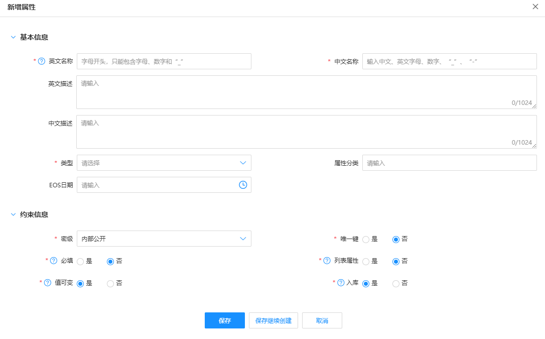 - 在“基本属性”栏中,单击“新增”,弹出“新增属性”窗口。