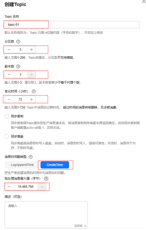 - 单击“创建Topic”,弹出“创建Topic”对话框。