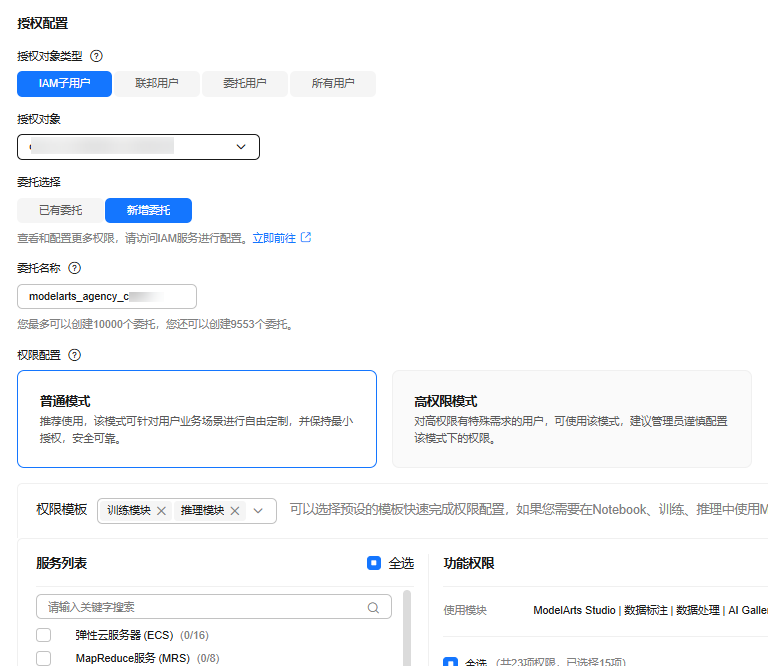 ModelArts使用过程中涉及到OBS、SWR、IEF等服务交互,首次使用ModelArts需要用户配置委托授权,允许访问这些依赖服务。