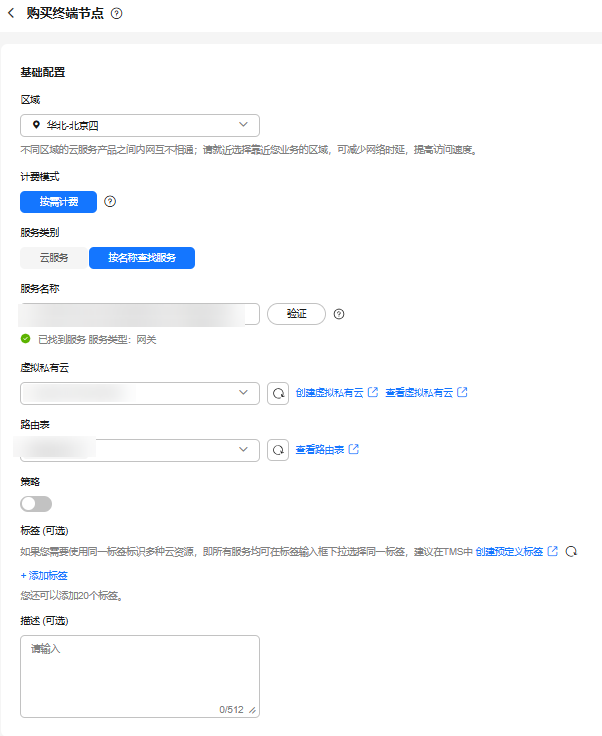 说明:后续新加路由表时,需要重新购买终端节点并绑定对应新增的路由表。