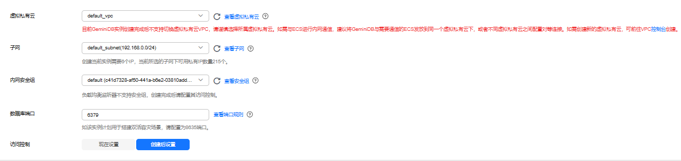 说明:- 目前实例创建完成后不支持切换虚拟私有云VPC,请谨慎选择所属虚拟私有云。