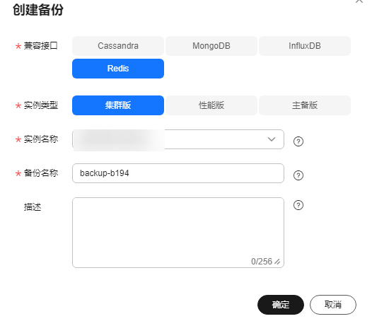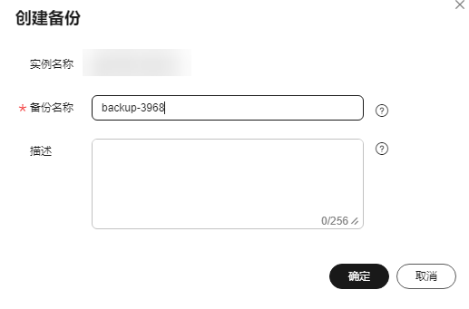 - 在“创建备份”弹出框中,输入备份名称及描述,单击“确定”。