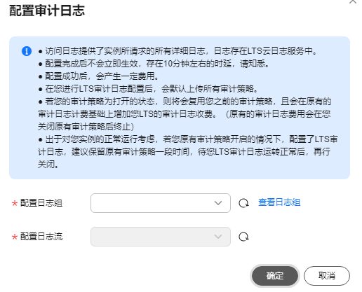 - 选择指定的实例,单击LTS审计日志配置开关
