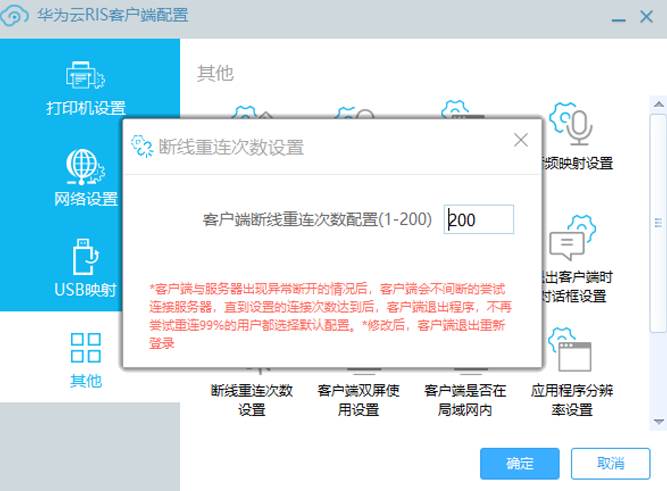 点击华为云成长型企业数字化转型包企业ERP客户端(原华为云RIS客户端)-设置-断线重连次数设置: