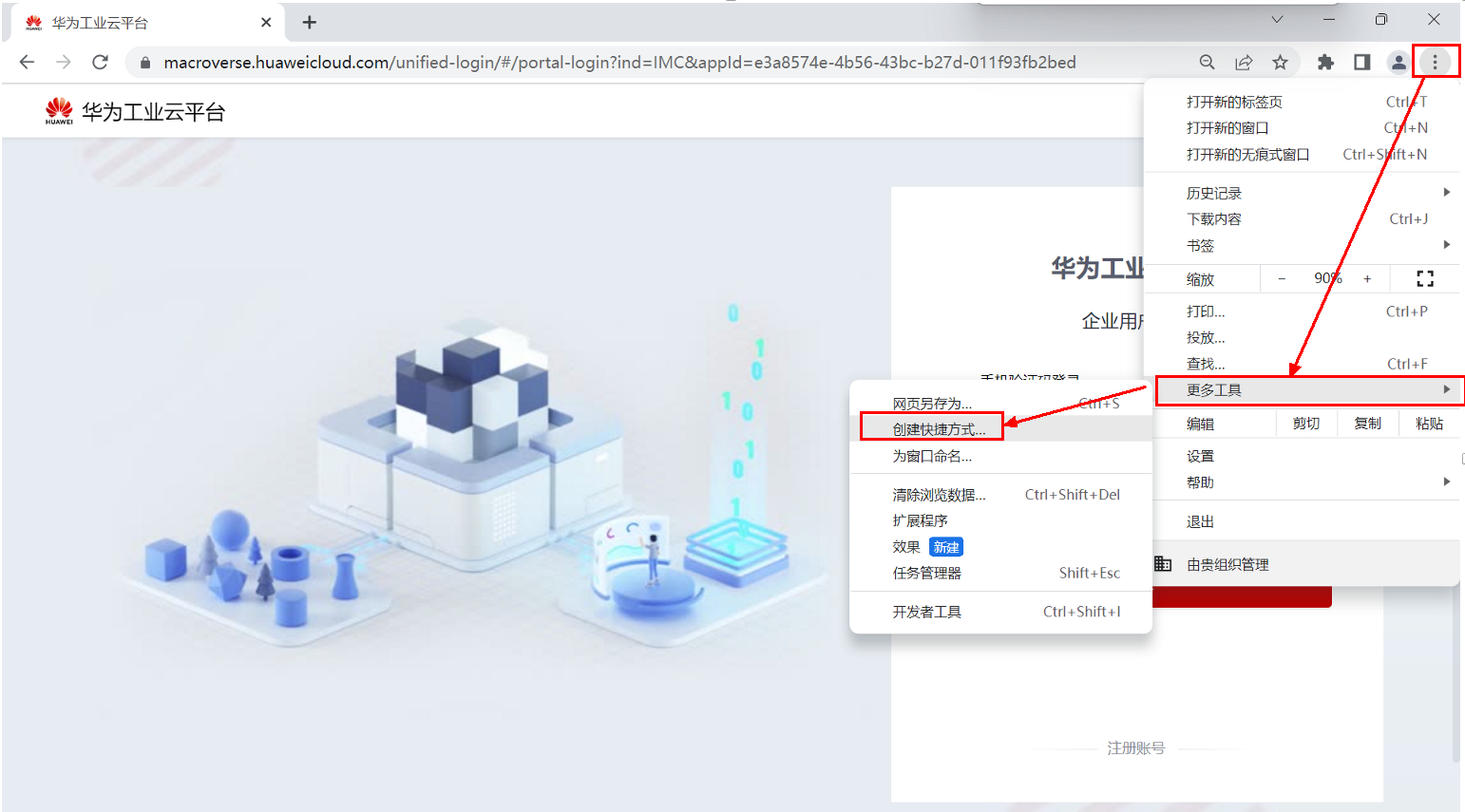 2)点击右上角“自定义及控制”,选择更多工具创建快捷方式。