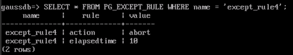 - 通过PG_EXCEPT_RULE系统表,可以查看异常规则定义。