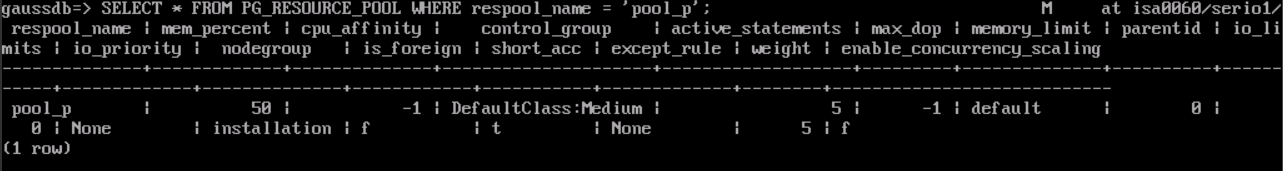 1SELECT * FROM PG_RESOURCE_POOL WHERE respool_name = 'pool_p';