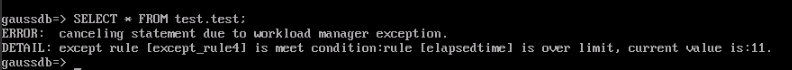 - 以作业用户user4连接数据库,执行以下SQL,超过10秒,语句被终止了。