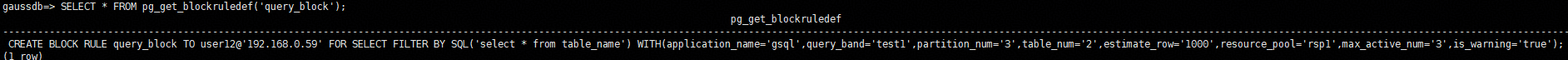1 | SELECT * FROM pg_get_blockruledef('query_block'); |