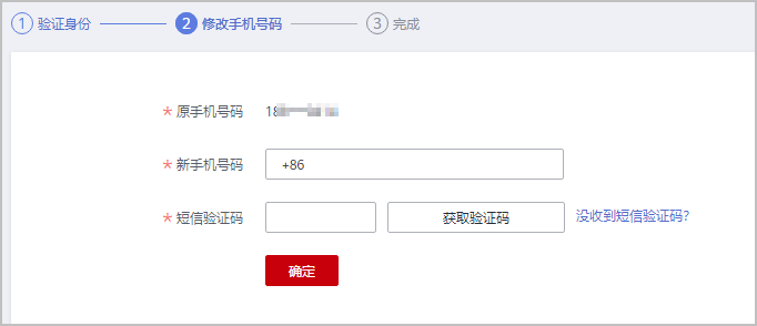 - 输入新手机号码并单击“获取验证码”,获取并输入短信验证码。