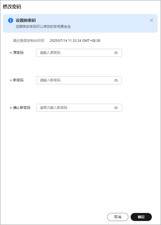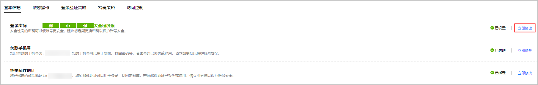 - 单击“登录密码”后的“立即修改”,弹出“修改密码”窗口。