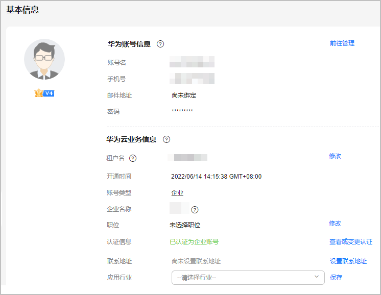 - 在“华为云业务信息”区域,单击“租户名”后的“修改”。