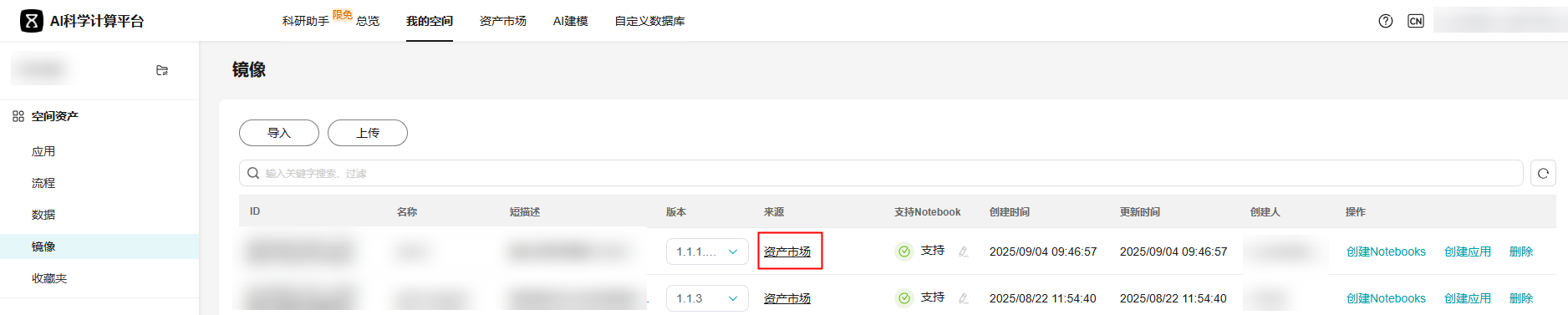 图1 资产订阅图2 资产详情页 - 进入空间,在“我的空间 > 镜像”页面列表中,可以查看已订阅的镜像资产。