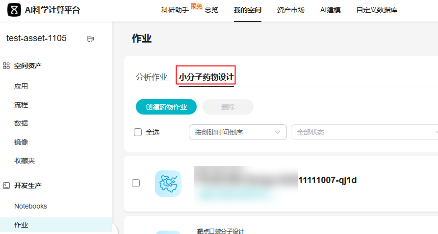 在作业中心页面,可以创建分子对接、分子优化、自由能微扰等的作业。