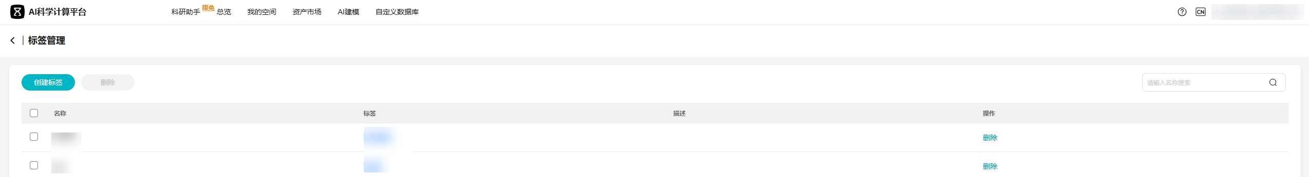在平台右上角用户名下拉菜单中选择“标签管理”,即可进入标签管理页面。