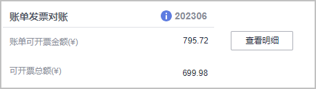 - 客户在“发票管理”页面,可查看最近一次已出账月份的账单可开票金额和可开票总额。当两者不一致时,将显示