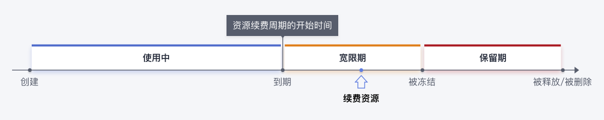 若实例进入宽限期/保留期后续费,续费周期的开始时间为实例的原到期时间,而非续费操作时间。