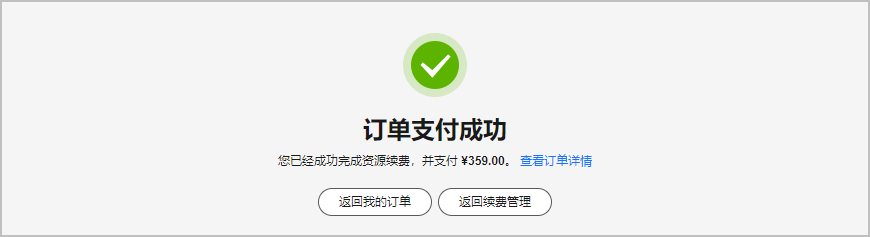 - 支付成功后即可完成续费。可以单击“查看订单详情”查看订单。