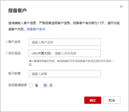 - 报备有效期为15天,有效期内禁止其他伙伴重复报备同一客户;过期后,该报备自动失效,所有合作伙伴都可以报备该客户。