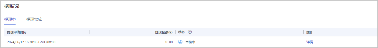 提现申请提交后,合作伙伴可以在伙伴中心查看提现申请的进度、详情信息,以及删除被驳回的提现申请记录。