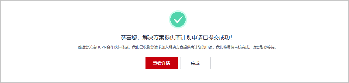 - 系统提示“恭喜您,解决方案提供商计划申请已提交成功”。