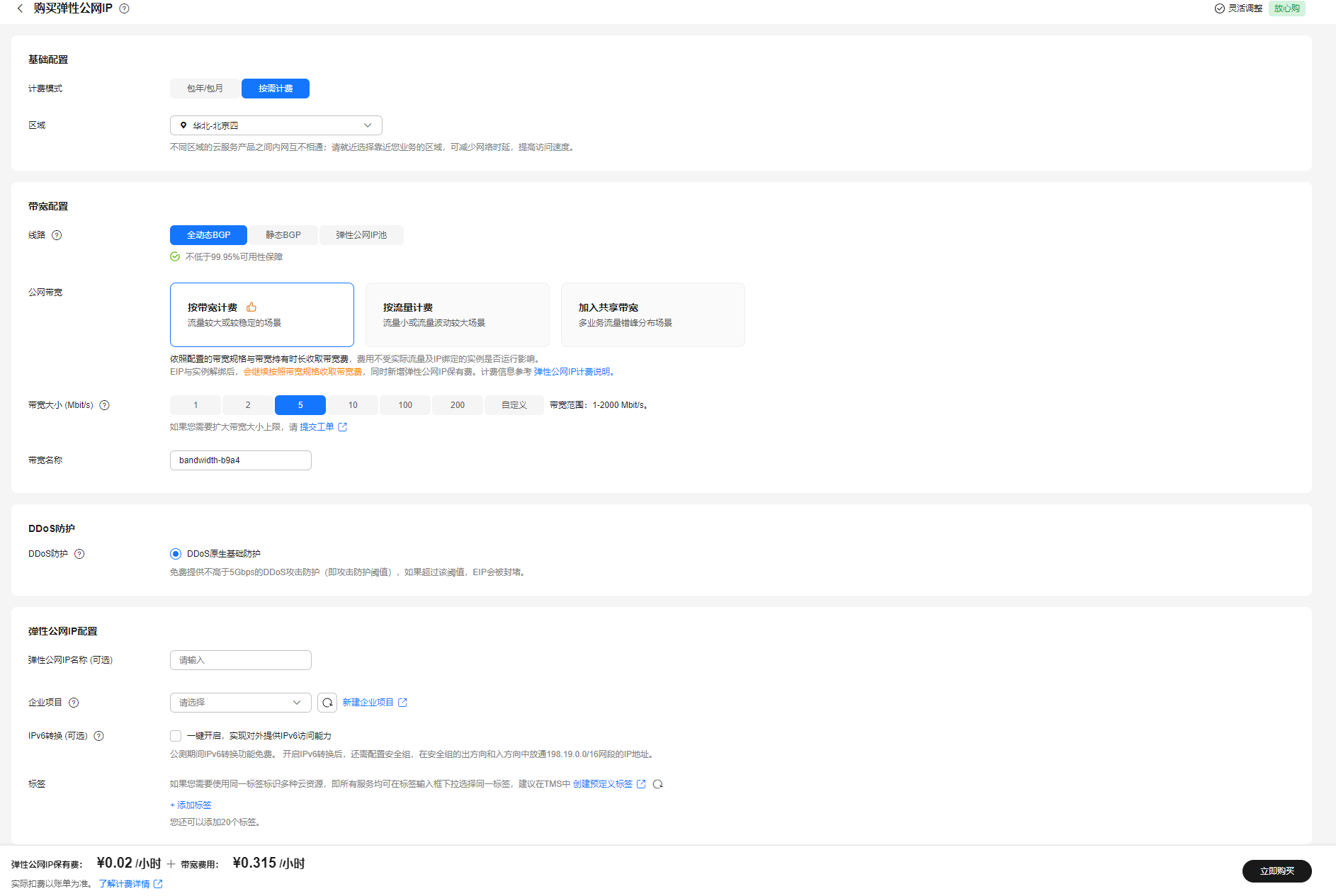- 在“弹性公网IP”界面,单击“购买弹性公网IP”。