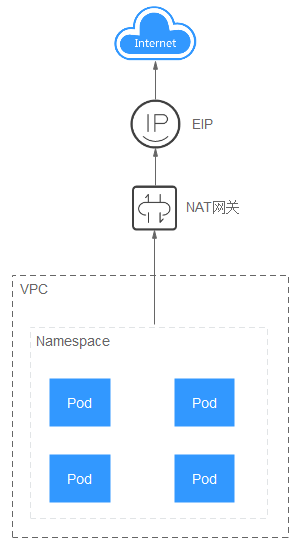 您可以使用NAT网关服务,该服务能够为VPC内的容器实例提供网络地址转换(Network Address Translation)服务,SNAT功能通过绑定弹性公网IP,实现私有IP向公有IP的转换,可实现VPC内的容器实例共享弹性公网IP访问Internet。其原理如图1所示。通过NAT网关的SNAT功能,即使VPC内的容器实例不配置弹性公网IP也可以直接访问Internet,提供超大并发数的连接服务,适用于请求量大、连接数多的服务。