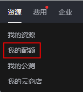 - 在页面右上角,选择“资源 > 我的配额”。进入“服务配额”页面。
