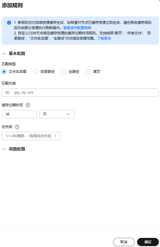 - 单击“确定”,完成缓存规则配置。