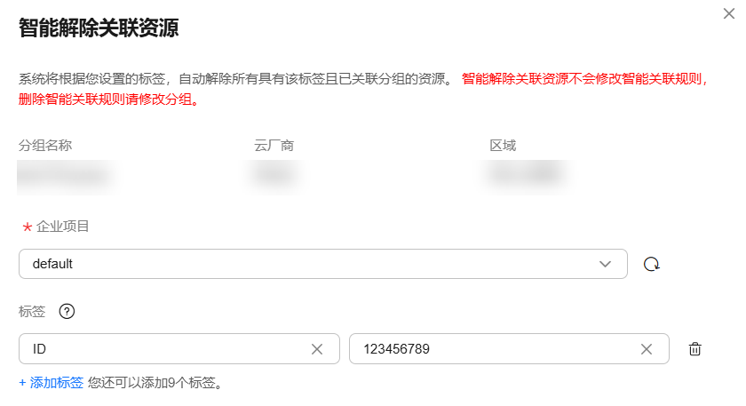分组关联资源后,若有业务需求变化可将分组内的资源解除关联。
