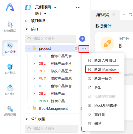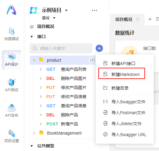 图标,在弹出的下拉框中,选择“新建Markdown”。