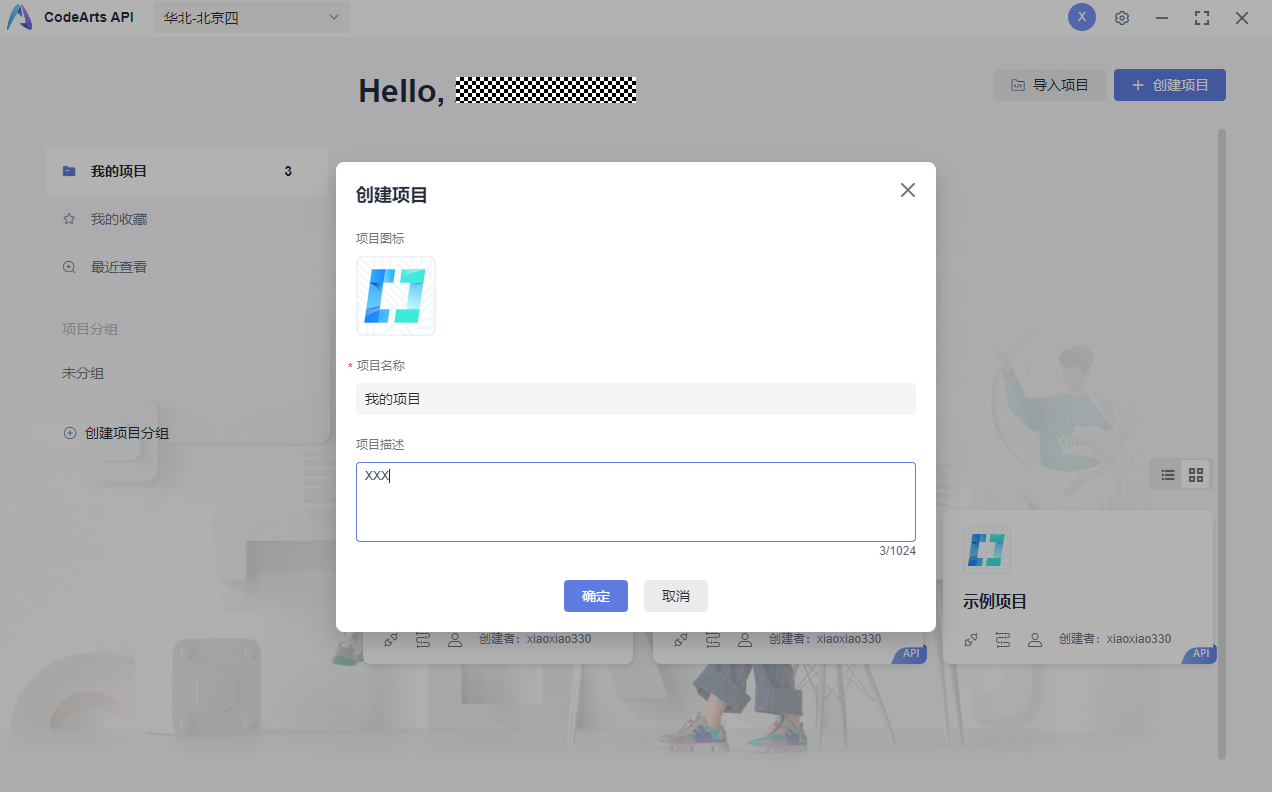 - 登录CodeArts API控制台,单击“创建项目”,弹出“创建项目”窗口。