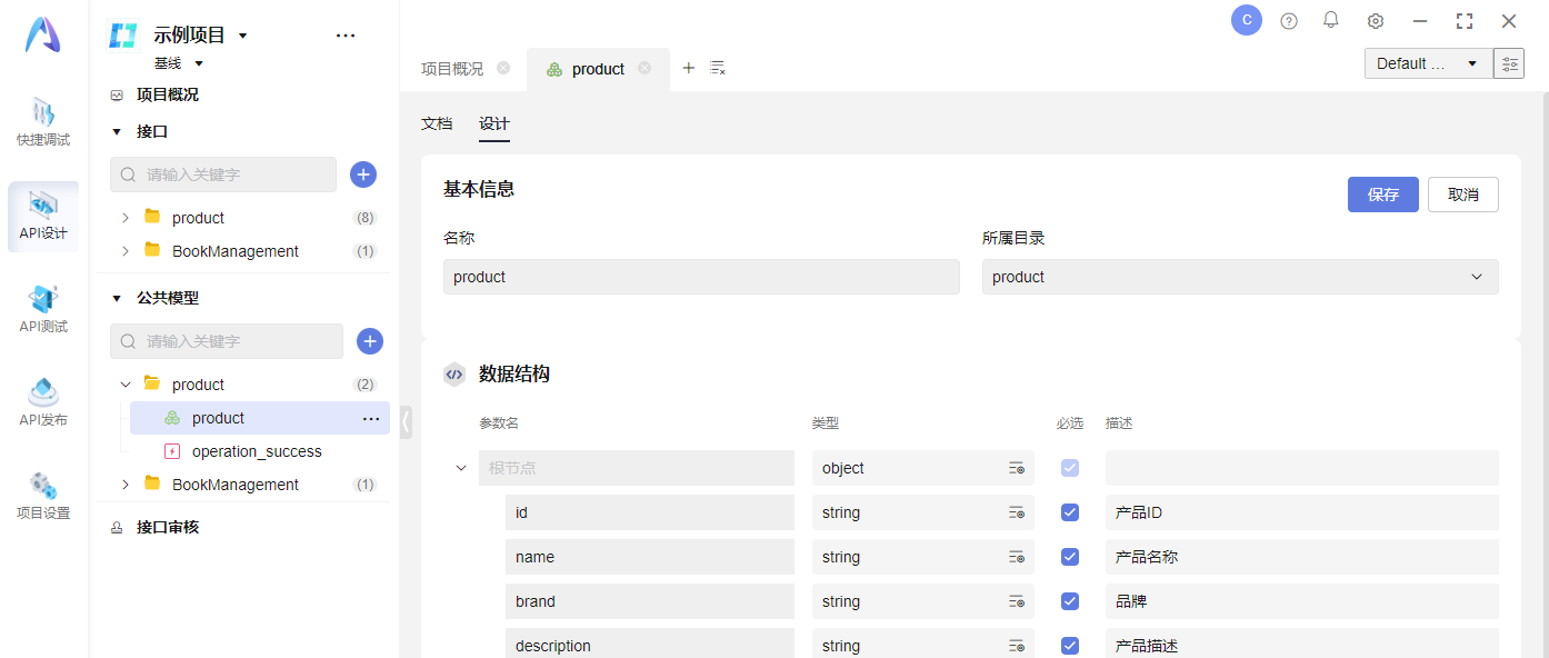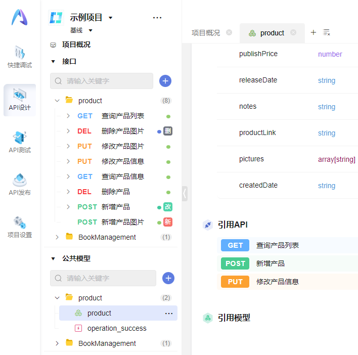 在设计API的Body体或响应体时,可以直接引用公共数据结构。