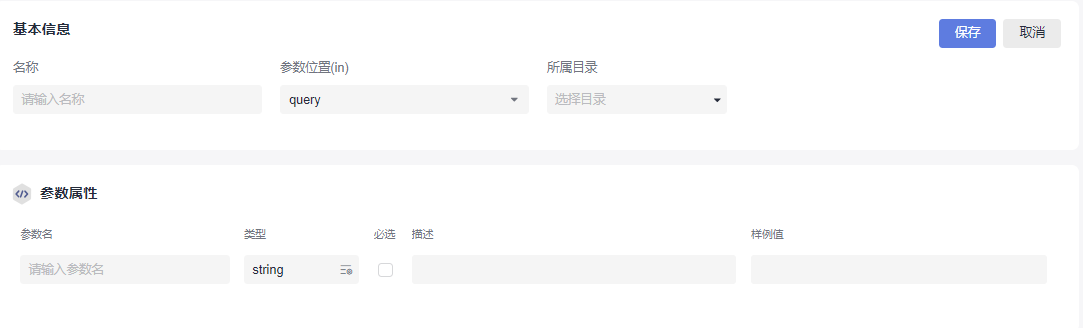 接口的公共请求参数,参数位置可选“query”参数、“path”参数、“header”参数。