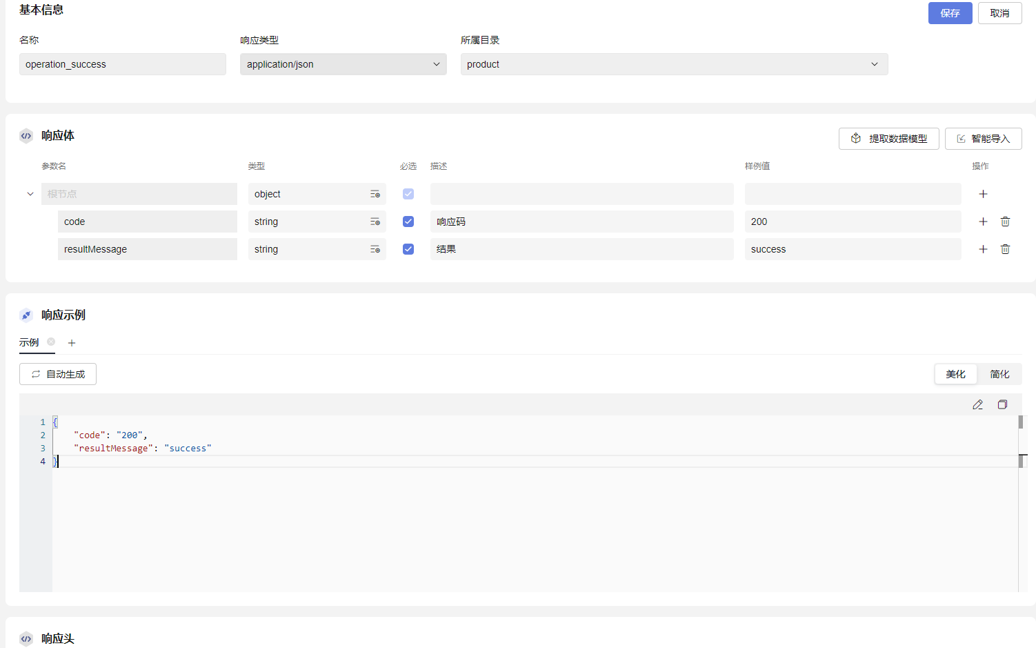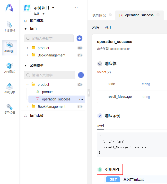 在设计API的响应体时,可以直接引用已设计好的公共响应。