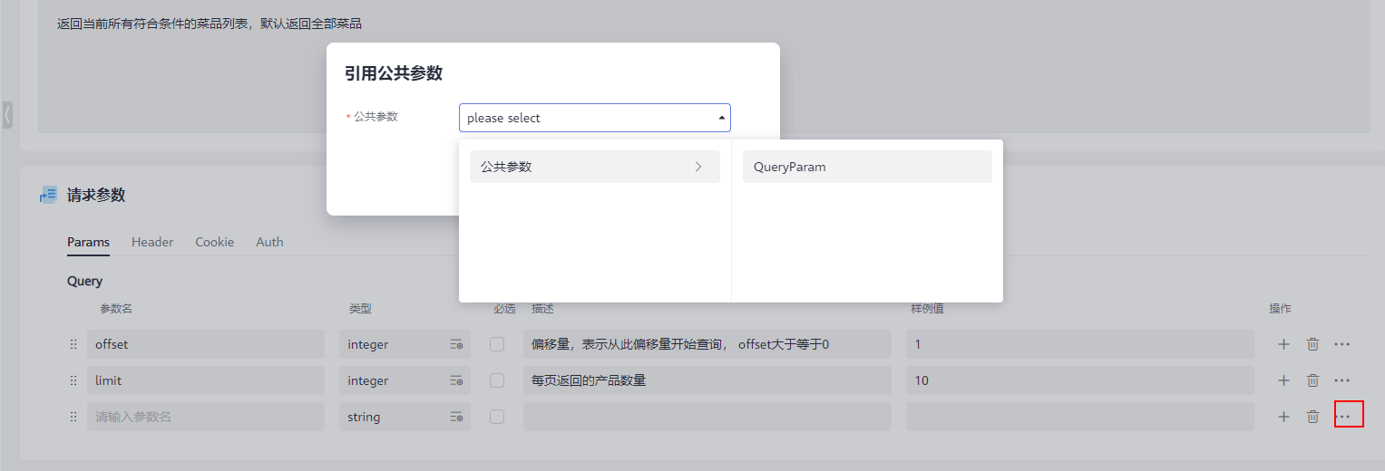 在设计API的请求参数时,可以引用已设计好的公共参数。