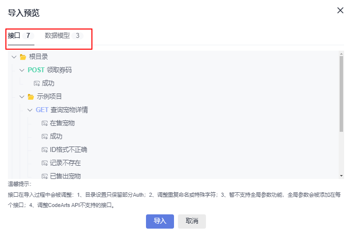 CodeArts API提供友商项目导入功能,目前支持API Fox项目及YApi项目中的API设计导入CodeArts API中。