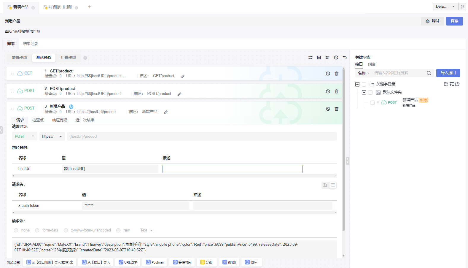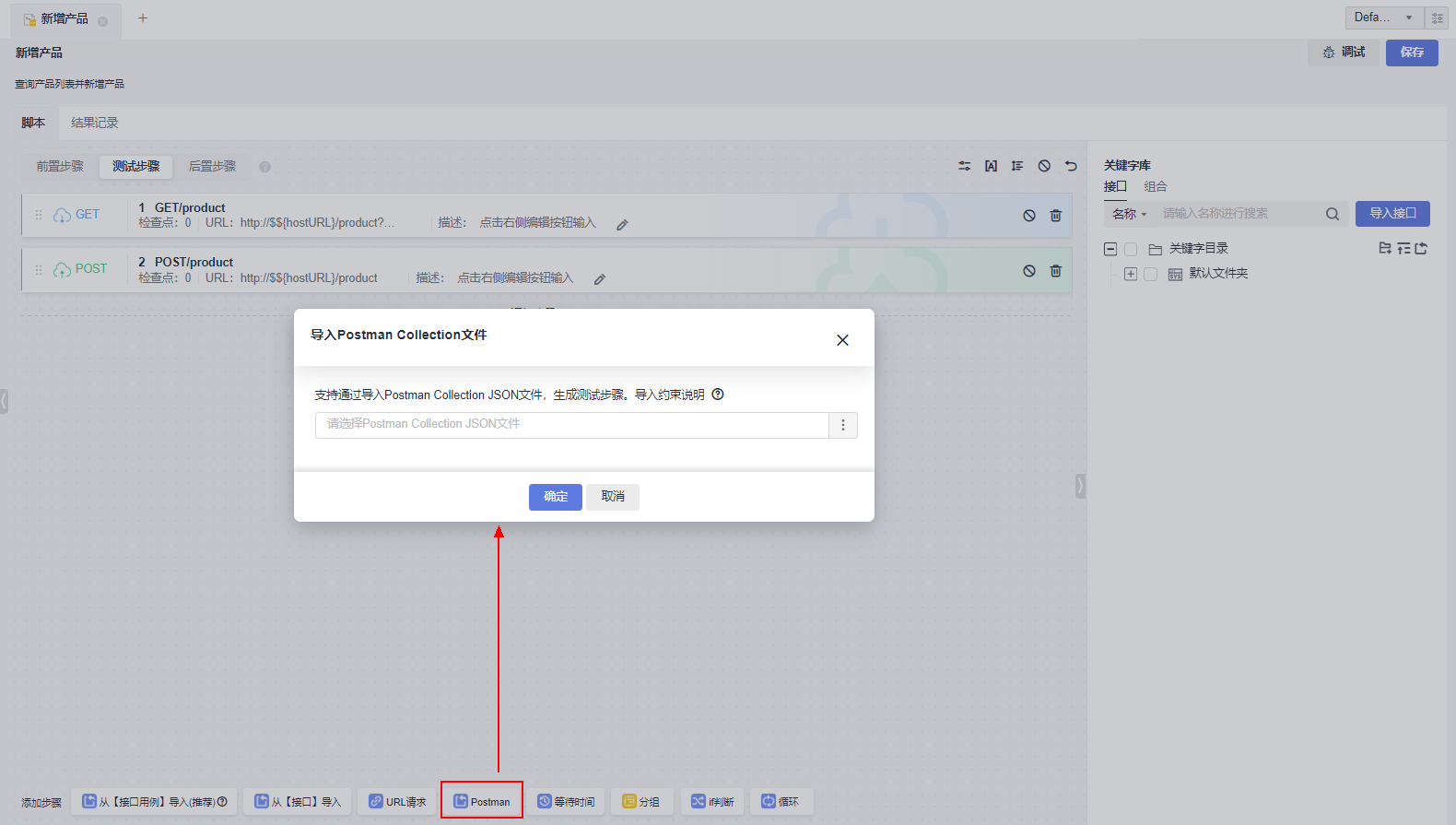 接口自动化测试用例支持通过导入Postman文件,生成测试步骤。
