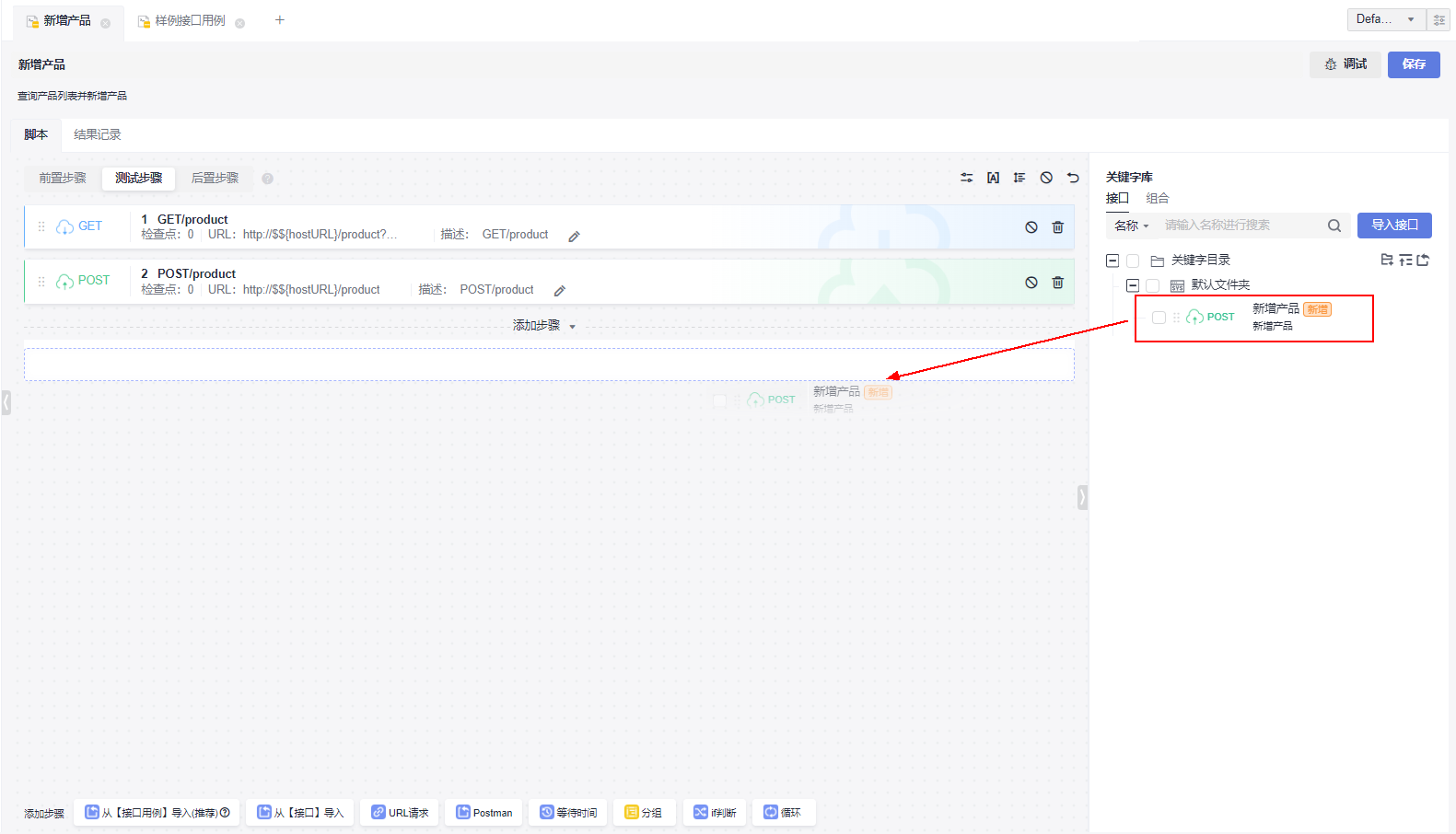 定义接口核心测试步骤,主要是对测试场景的详细描述,建议从API设计中选择要测试接口作为核心测试步骤,在此步骤检测最终结果。