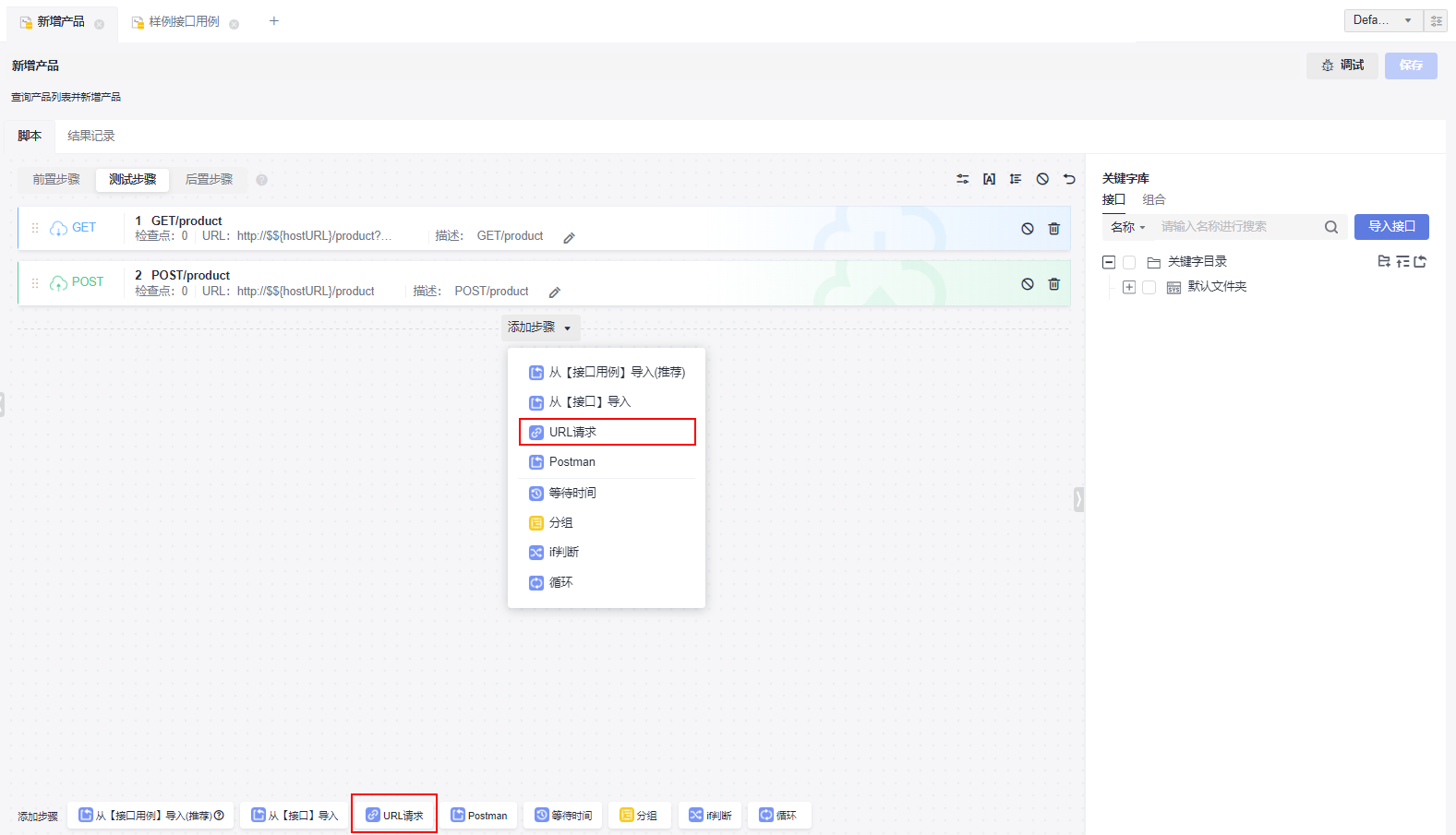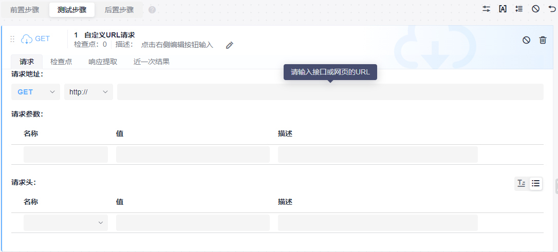 - 单击“URL请求”选项,添加“自定义URL请求”测试步骤。