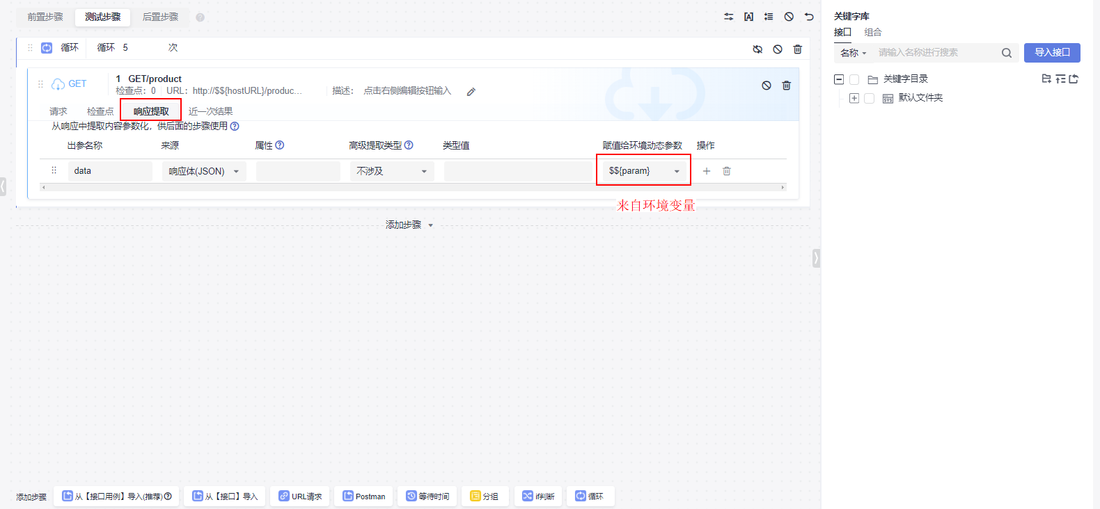 - 响应提取支持根据给定的“key:value”获取字符串,详细配置可参考示例:根据给定的key:value从响应体中获取字符串。