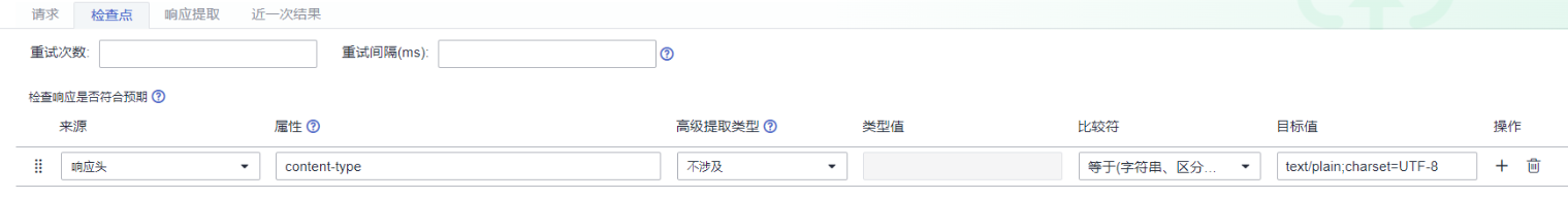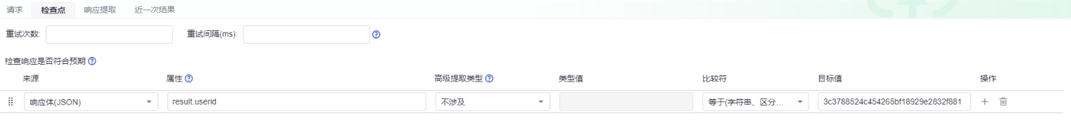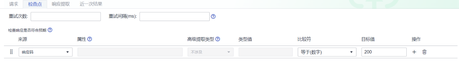 - 推荐用户设置检查点。针对接口类请求,请提供判断响应码的检查点。