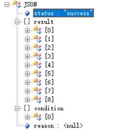 - 检查响应体(JSON)中某个数组的对象的字段值(数组条件采用下标确定对象,下标从0开始)。例如: