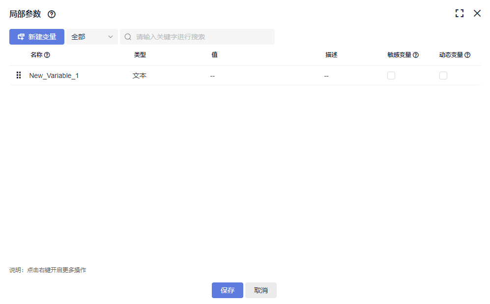 上限为10000字符,支持设置“敏感参数”、“动态参数” ,默认为否。 |