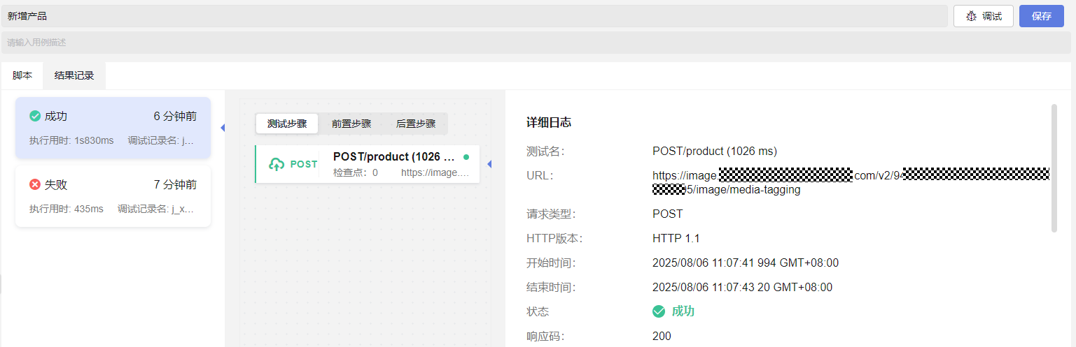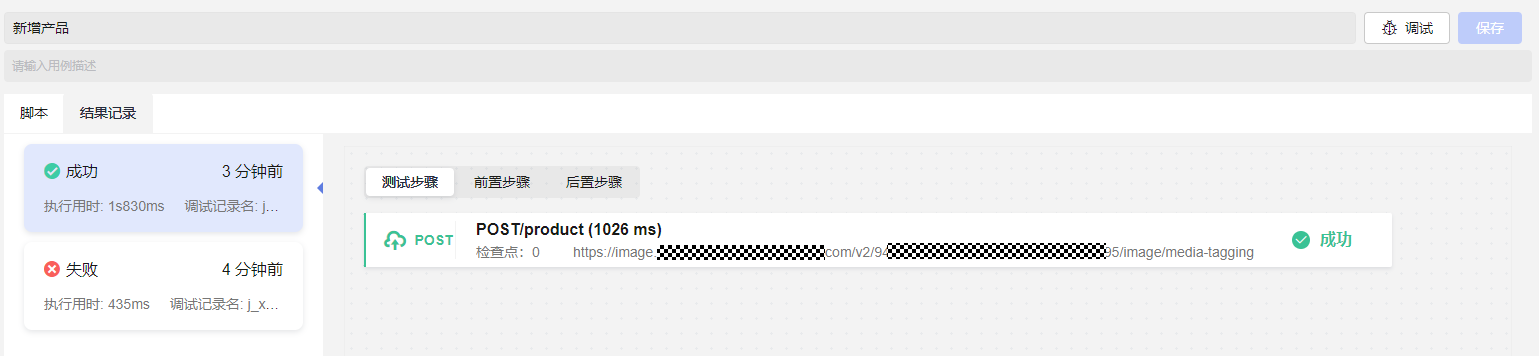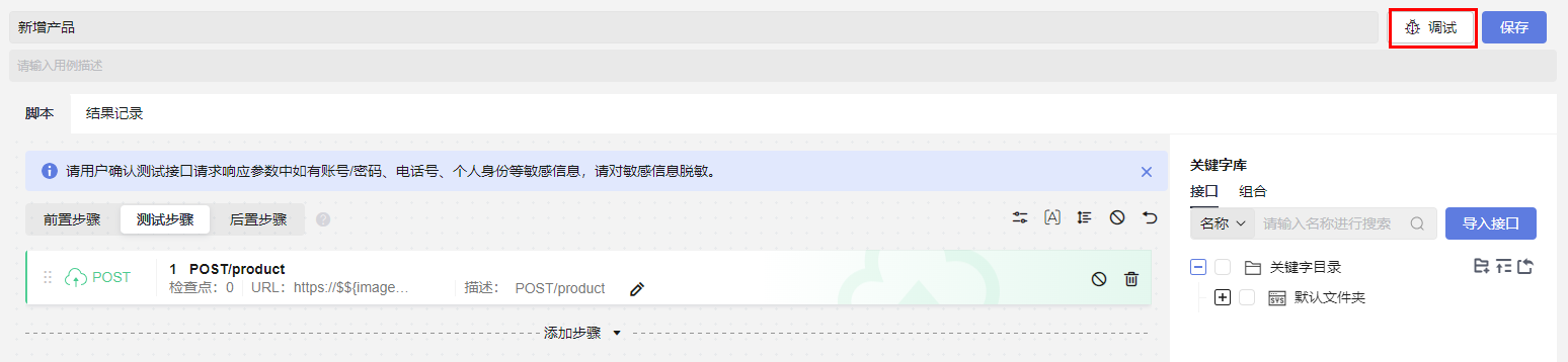 在“测试用例”页面,单击“调试”,开始执行测试用例。