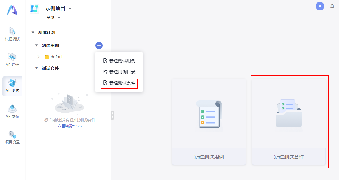 - 在“新建测试套件”页面,填写用例名称与描述。