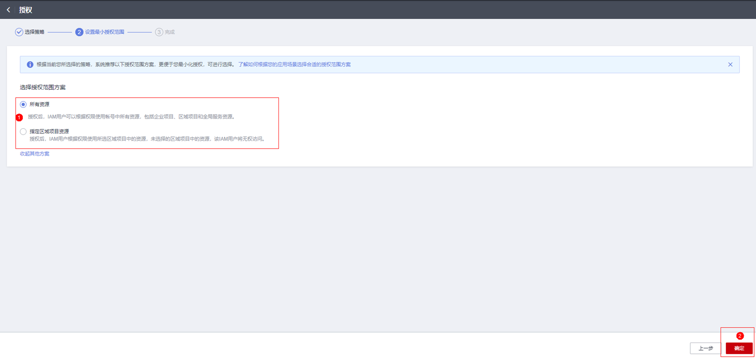 5. 选择权限的作用范围后,单击“确定”,完成用户组授权。