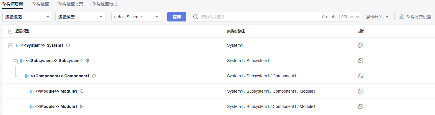 按逻辑规则构建的架构信息树,树上不会显示异常:
