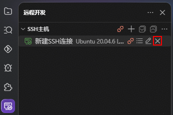 - 删除远程连接:在华为云码道IDE的远程开发中,将鼠标悬浮在需要删除的远程连接上,单击