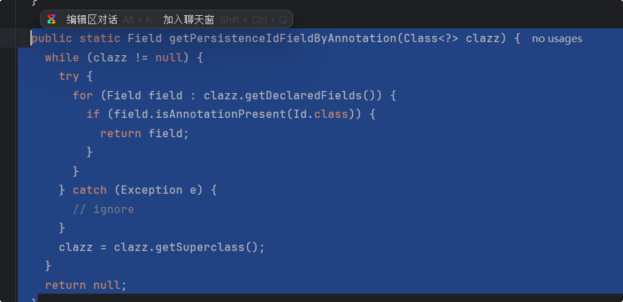 - 选中需要编辑的代码,单击“编辑区对话”或按下快捷键“Alt+K”打开编辑区对话。